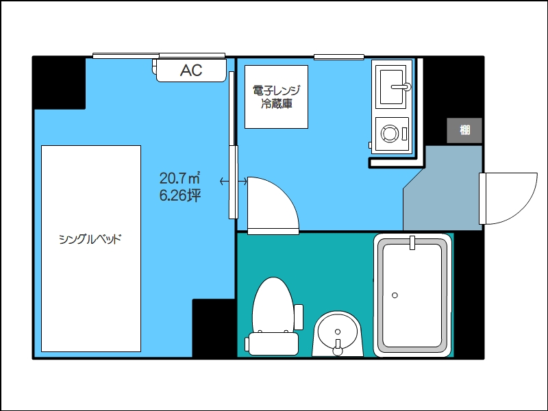 | 築年数 | 築45年 | 専有面積(㎡) | 20.7 |