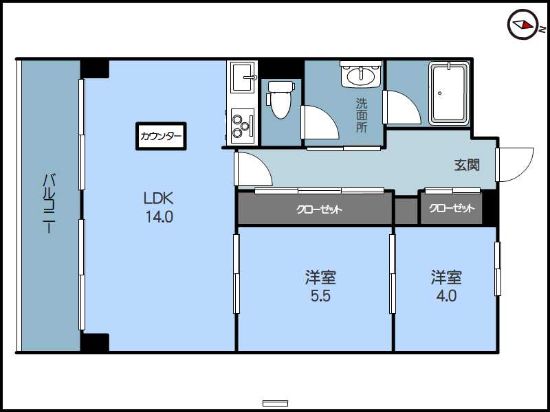 | 間取り/面積 | 2LDK/56.7㎡ | 築年数 | 築42年 |